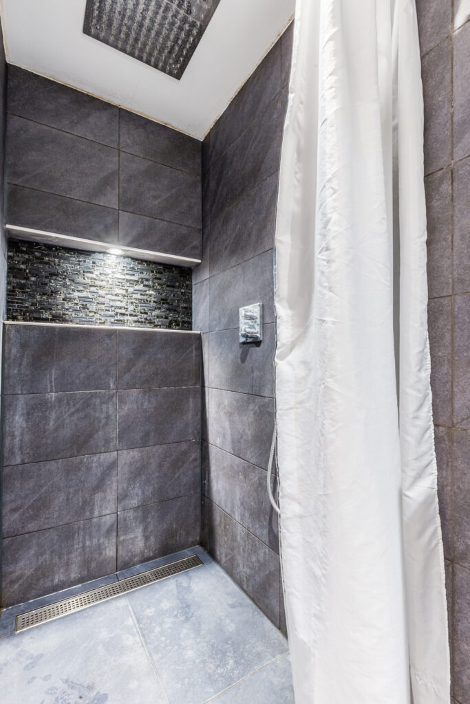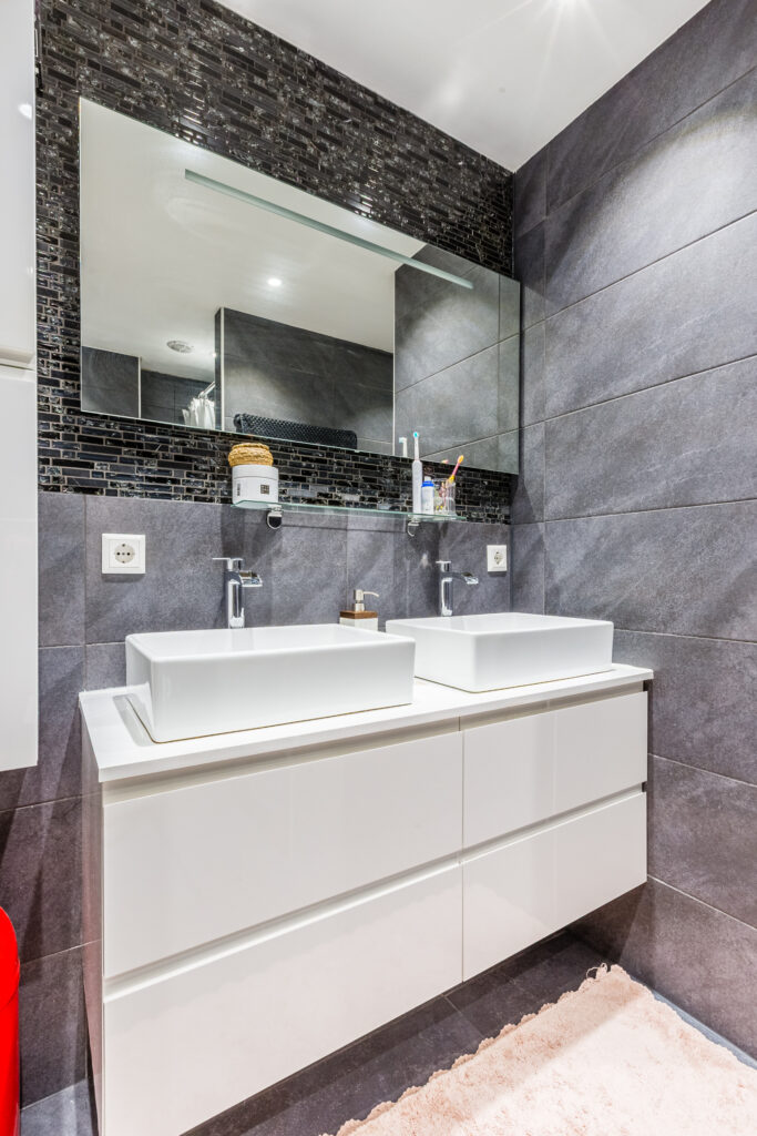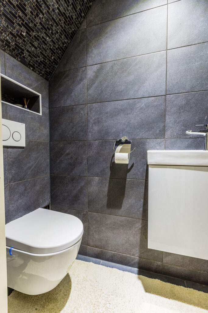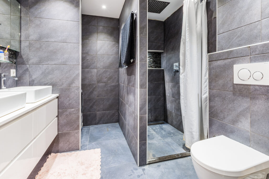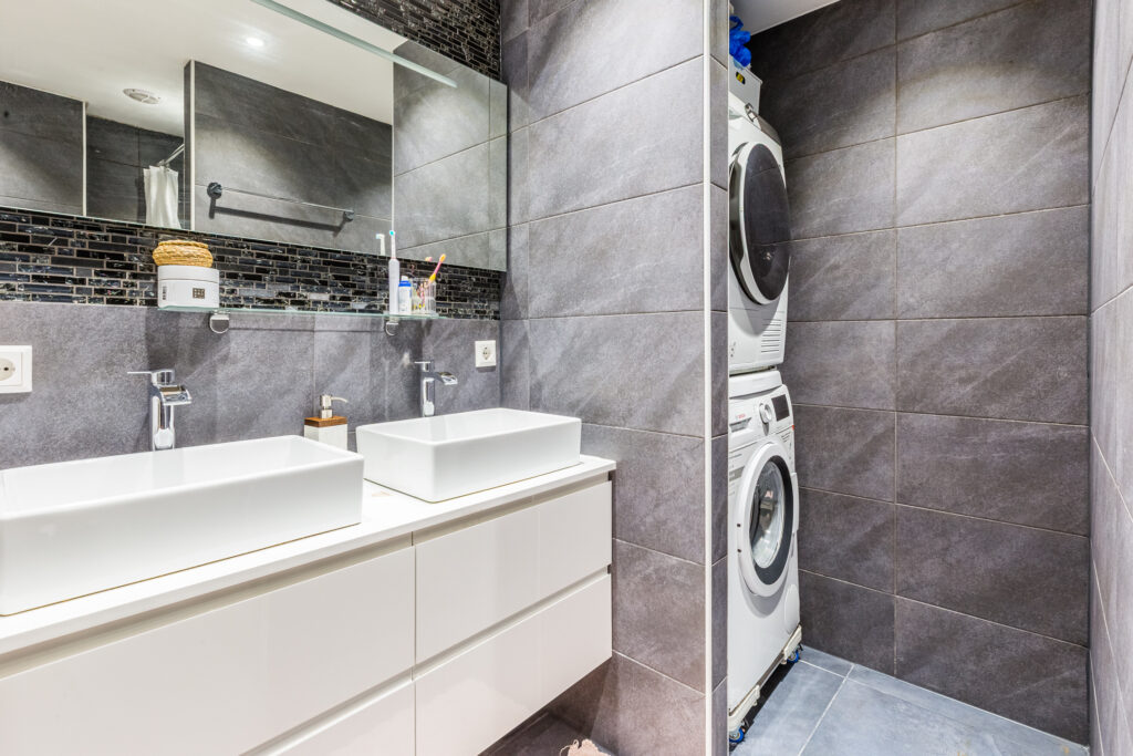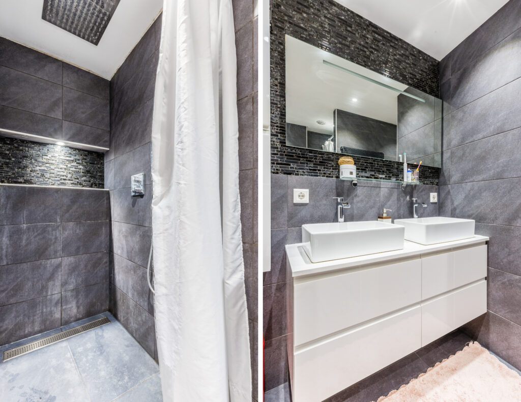 De badkamer heeft een centrale ligging op deze verdieping. Deze ruimte is in 2018 vernieuwd en straalt veel luxe uit. De badkamer is netjes betegeld en uitgerust met een zwevend toilet, badmeubel met dubbele wastafel en inloopdouche met regendouche. Ook vind je hier de aansluitingen voor de wasmachine en de droger.
