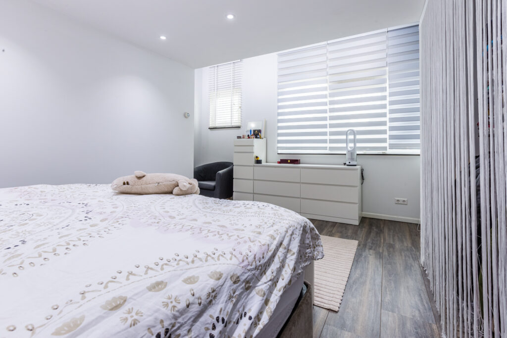Deze verdieping telt twee slaapkamers en een badkamer. Van de twee slaapkamers ligt er één aan de voorzijde en één aan de achterzijde. Beide kamers beschikken over een prachtige laminaatvloer en zijn modern afgewerkt. Ze zijn ruim van formaat en genieten daarnaast van een geweldige lichtinval. De kamers worden verder verlicht met inbouwspots.