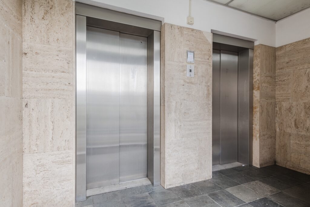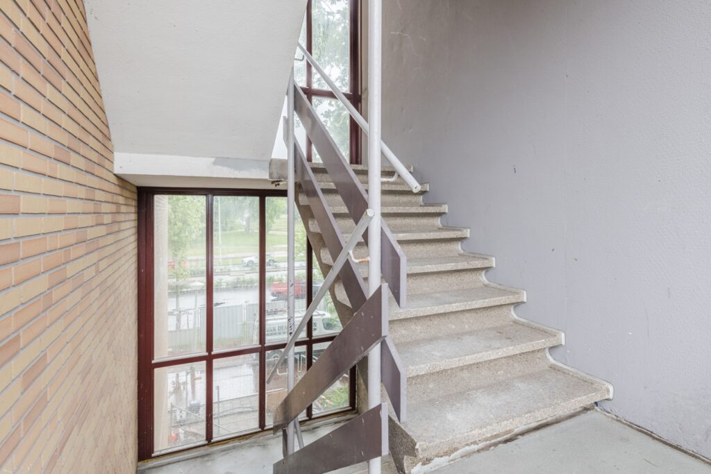 Gesloten entree. Gemeenschappelijke hal met trappenhuis en lift.