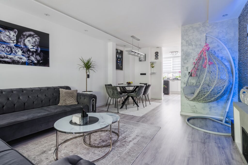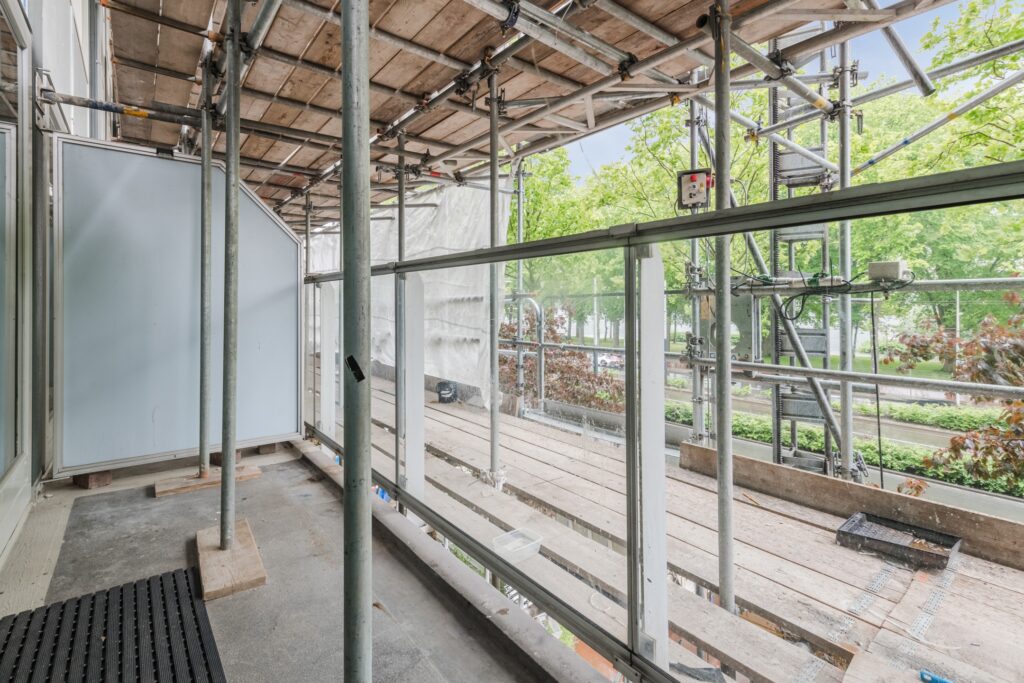 De ruime woonkamer is voorzien van een prachtige laminaatvloer en strakke wanden. De ruimte is modern ingericht. Dankzij het grote raam aan de voorzijde en de zeer brede raampartij aan de achterzijde, komt er veel natuurlijk licht naar binnen. Verder wordt de woonkamer deels verlicht met inbouwspots. Een schuifdeur in de woonkamer geeft direct toegang tot het balkon. Het balkon is groot genoeg voor een loungeplek en biedt mooi uitzicht over De Sloterplas.
