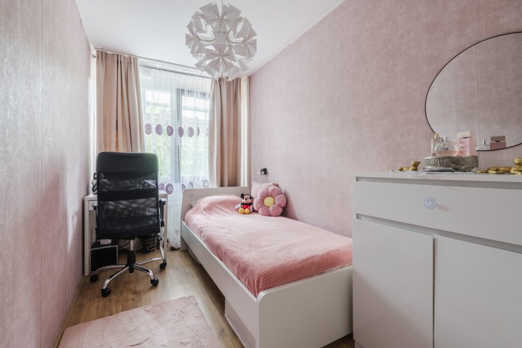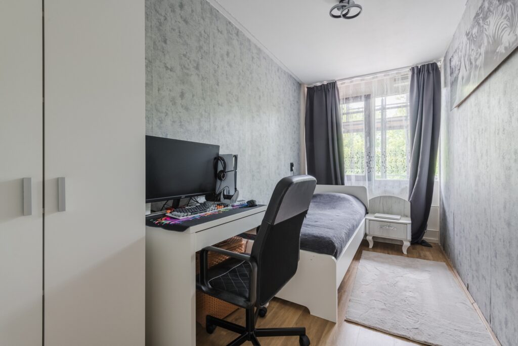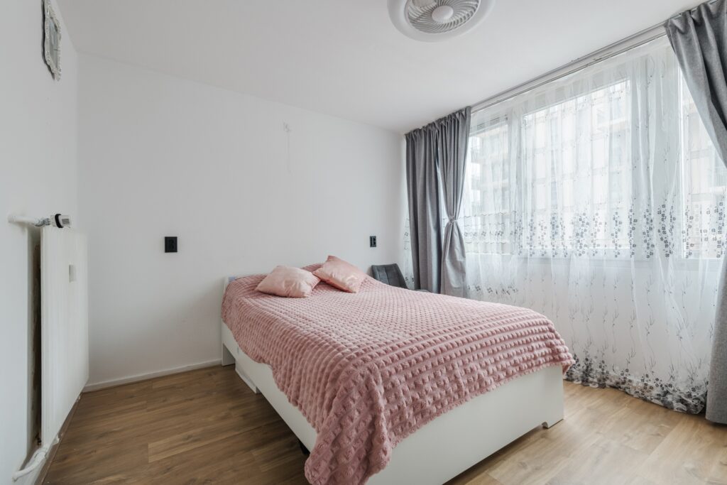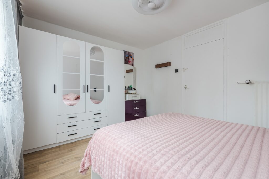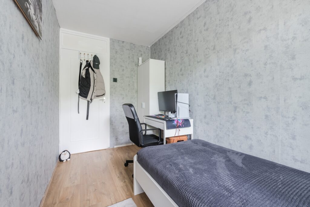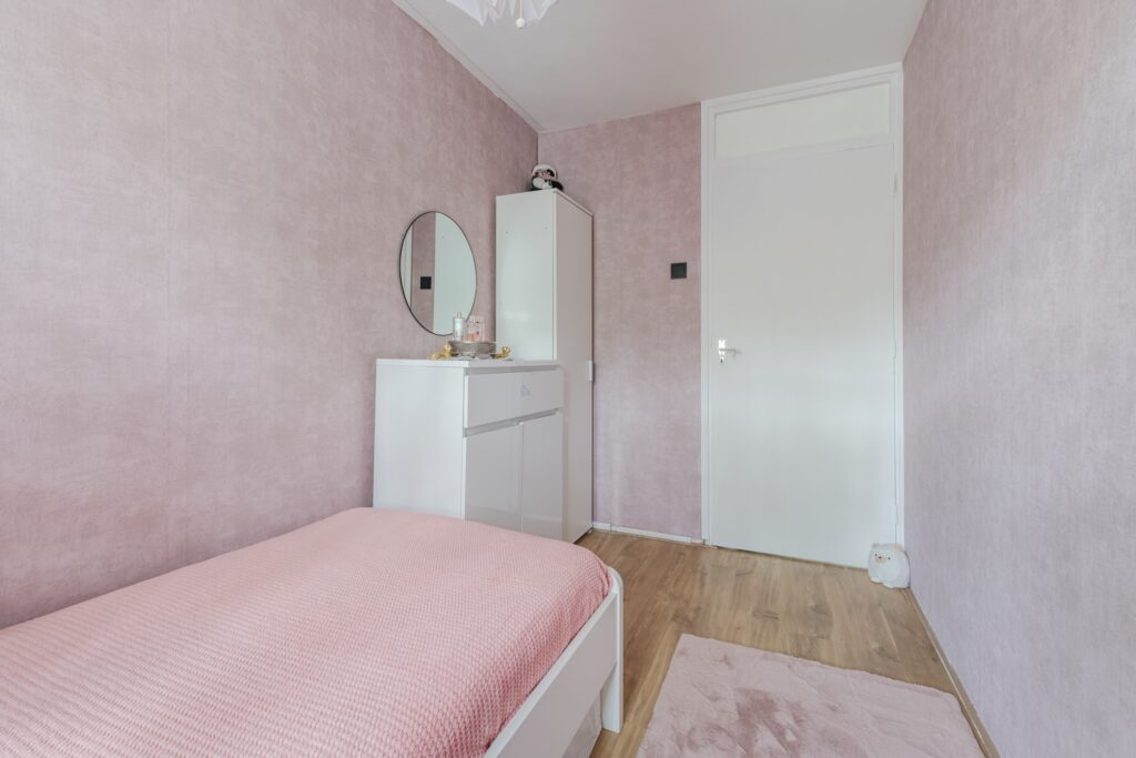 Van de drie slaapkamers liggen er twee aan de achterzijde en één aan de voorzijde. Alle kamers beschikken over een mooie laminaatvloer en keurig afgewerkte wanden. De lichtinval is in alle kamers uitstekend.