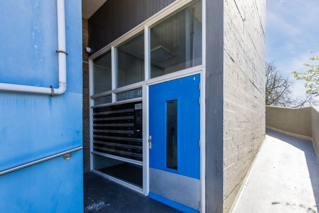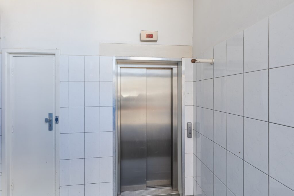 Gesloten entree met bel en intercom. Gemeenschappelijke hal met trappenhuis en lift.