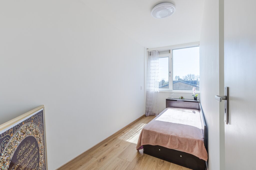 Op de tweede woonlaag bevinden zich drie slaapkamers, een badkamer en opbergkasten. De slaapkamers beschikken over een laminaatvloer en strakke wanden. Elke slaapkamer profiteert van veel natuurlijk licht.
