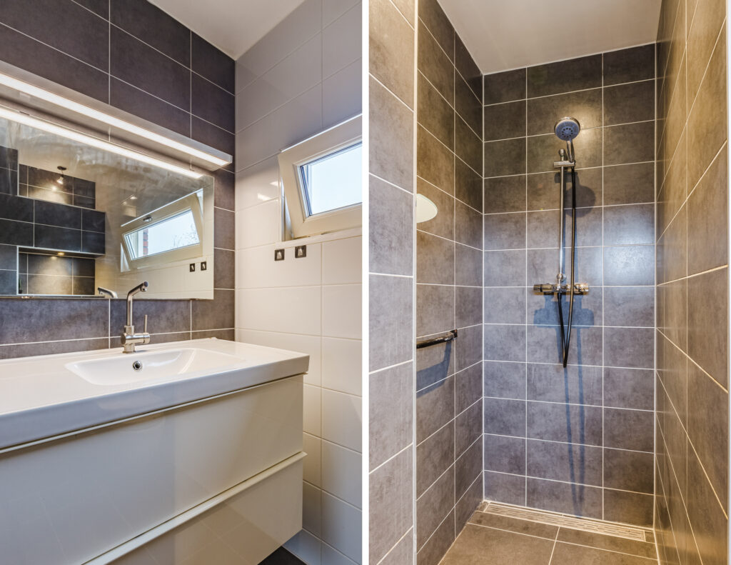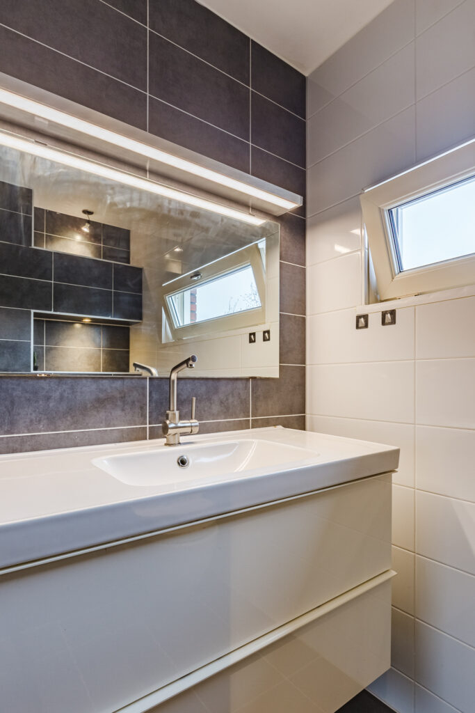 • Stijlvolle badkamer met drempelvrije inloopdouche.