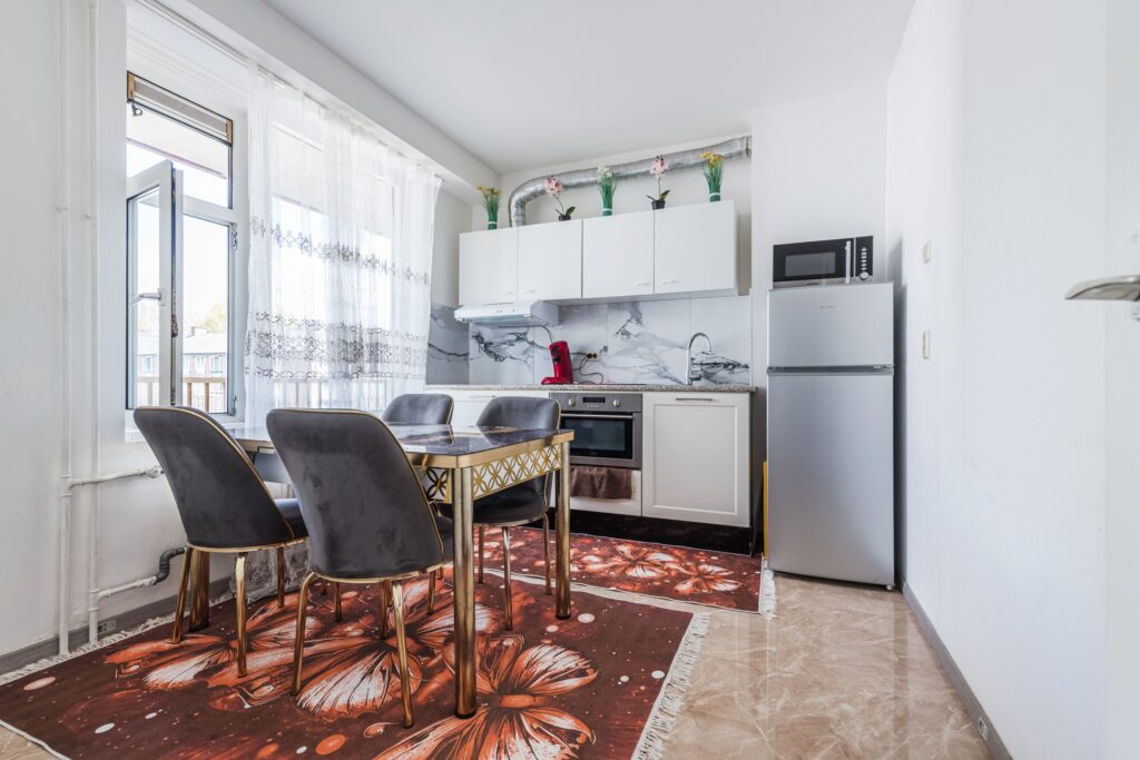 De gesloten keuken is aan de voorzijde van het appartement gelegen. In deze ruimte ligt een fraaie tegelvloer. De keuken is vernieuwd in 2023 en heeft een strak design met witte keukenkastjes en een stijlvol werkblad. Je beschikt hier over de volgende apparatuur: vaatwasser, oven, inductie fornuis, koelkast en vriezer.