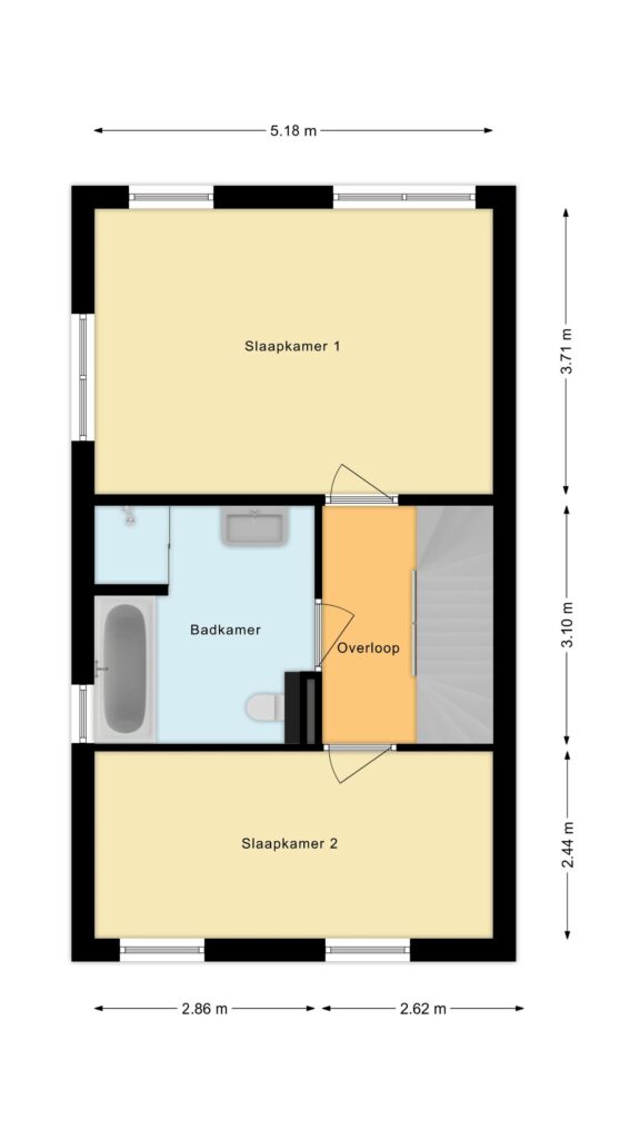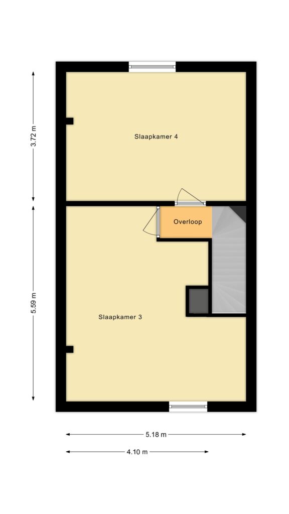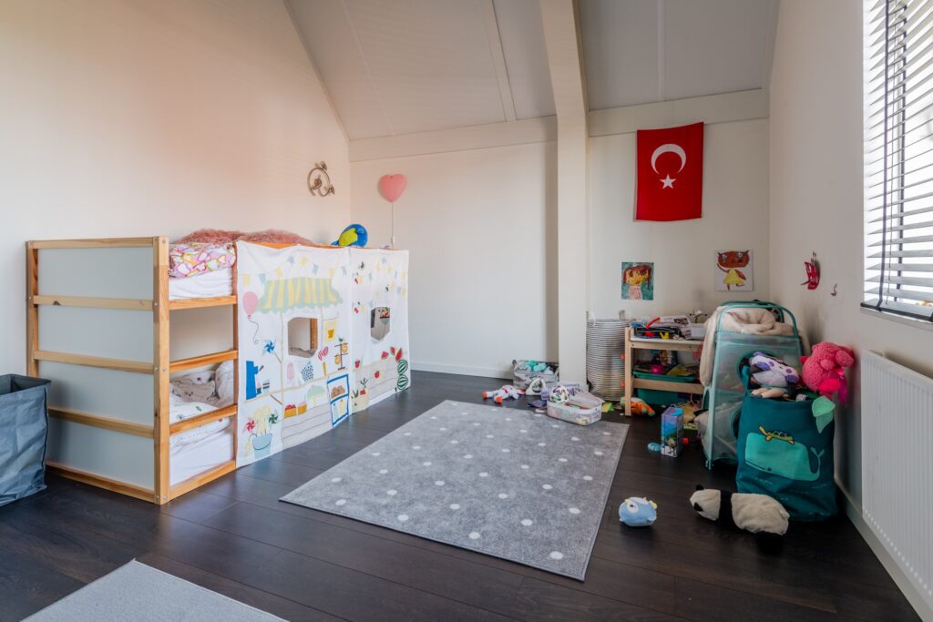 Via de vaste trap op de eerste verdieping bereik je de kleine overloop van de tweede verdieping. Deze overloop biedt toegang tot de derde en vierde slaapkamer. Deze slaapkamers zijn royaal opgezet en beschikken over een mooie laminaatvloer en strakke wanden. Beide kamers zijn uitgerust met een mooie inbouwkast.